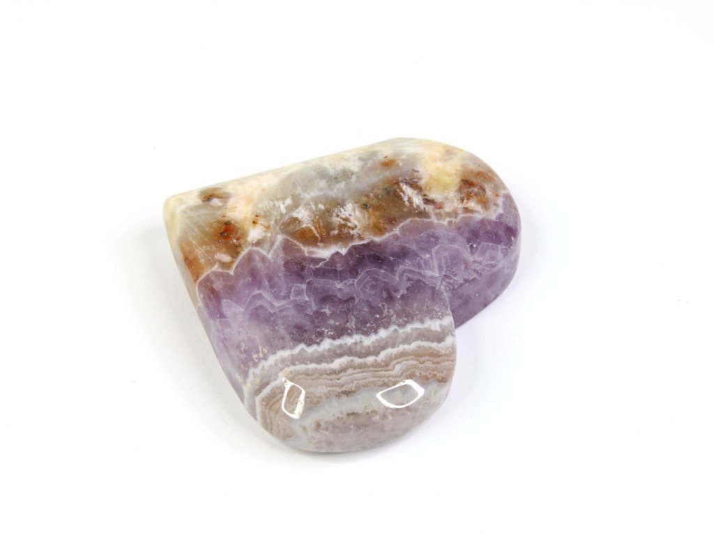 Achát s ametystem je vnímán jako ochranný a harmonizační kámen, který spojuje stabilitu s duchovní čistotou. Symbolika srdce navíc přidává rozměr lásky, emocí a vnitřního klidu.