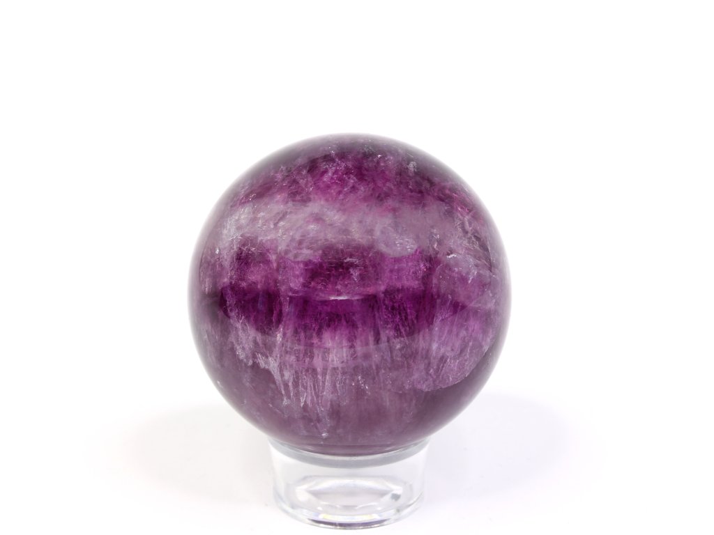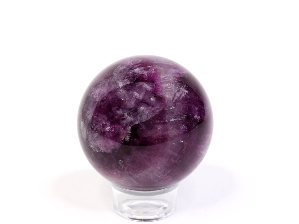 Fluorit fialový okouzlí sytými fialovými tóny a průhledností, díky které je možné nahlédnout do nitra kamene. V jeho hloubce můžete pozorovat duhové odlesky nebo přirozené vnitřní struktury, každý kus je originál! Koule z fluoritu působí harmonicky – tvar symbolizuje jednotu, nekonečno a plynulý tok energie.