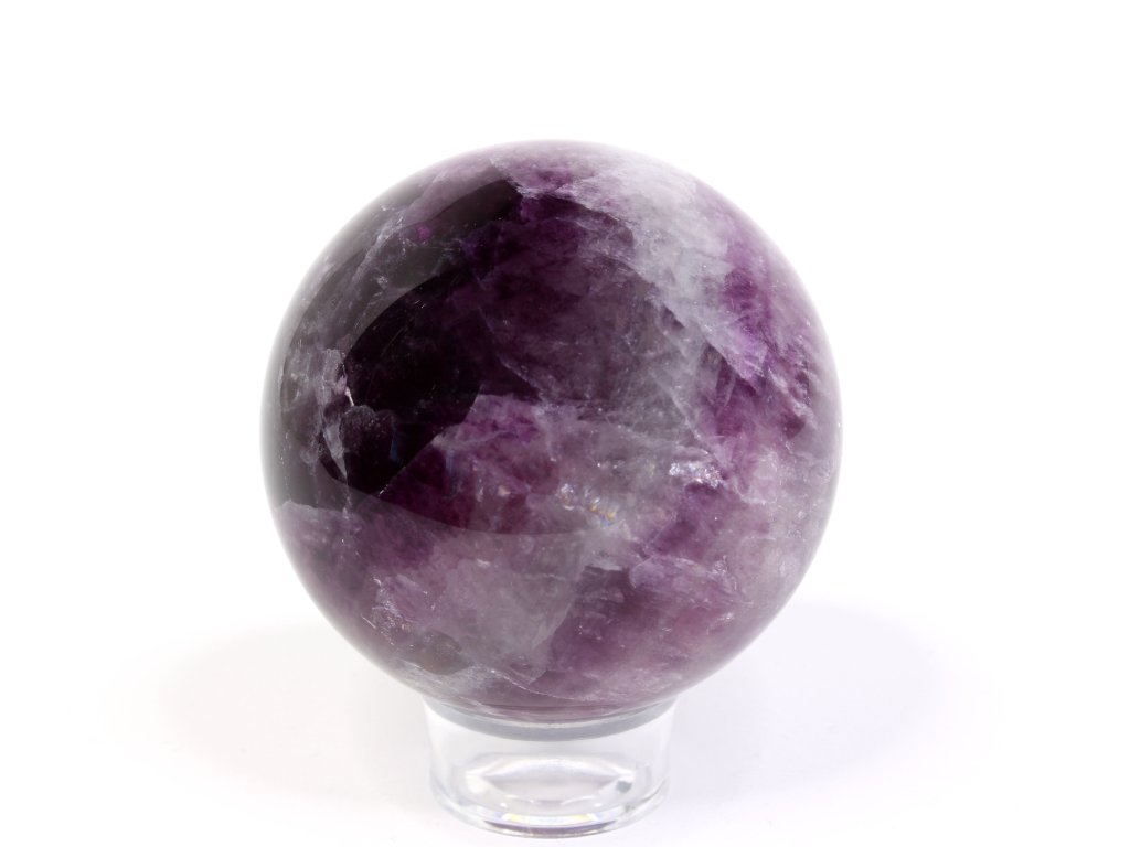 Fluorit fialový okouzlí sytými fialovými tóny a průhledností, díky které je možné nahlédnout do nitra kamene. V jeho hloubce můžete pozorovat duhové odlesky nebo přirozené vnitřní struktury, každý kus je originál! Koule z fluoritu působí harmonicky – tvar symbolizuje jednotu, nekonečno a plynulý tok energie.