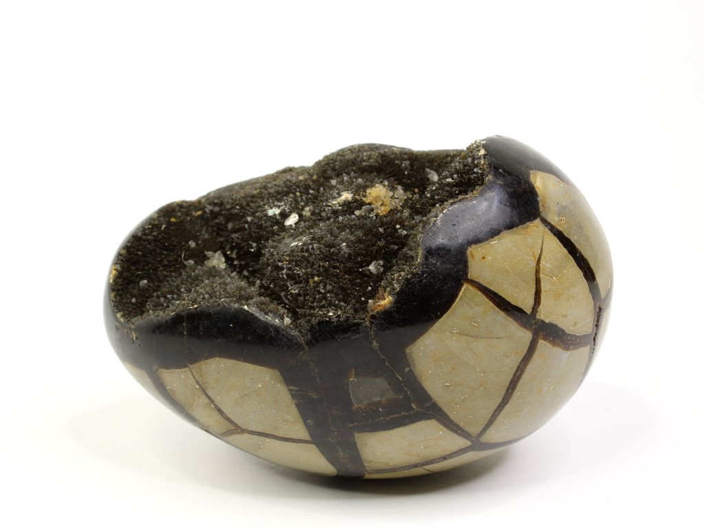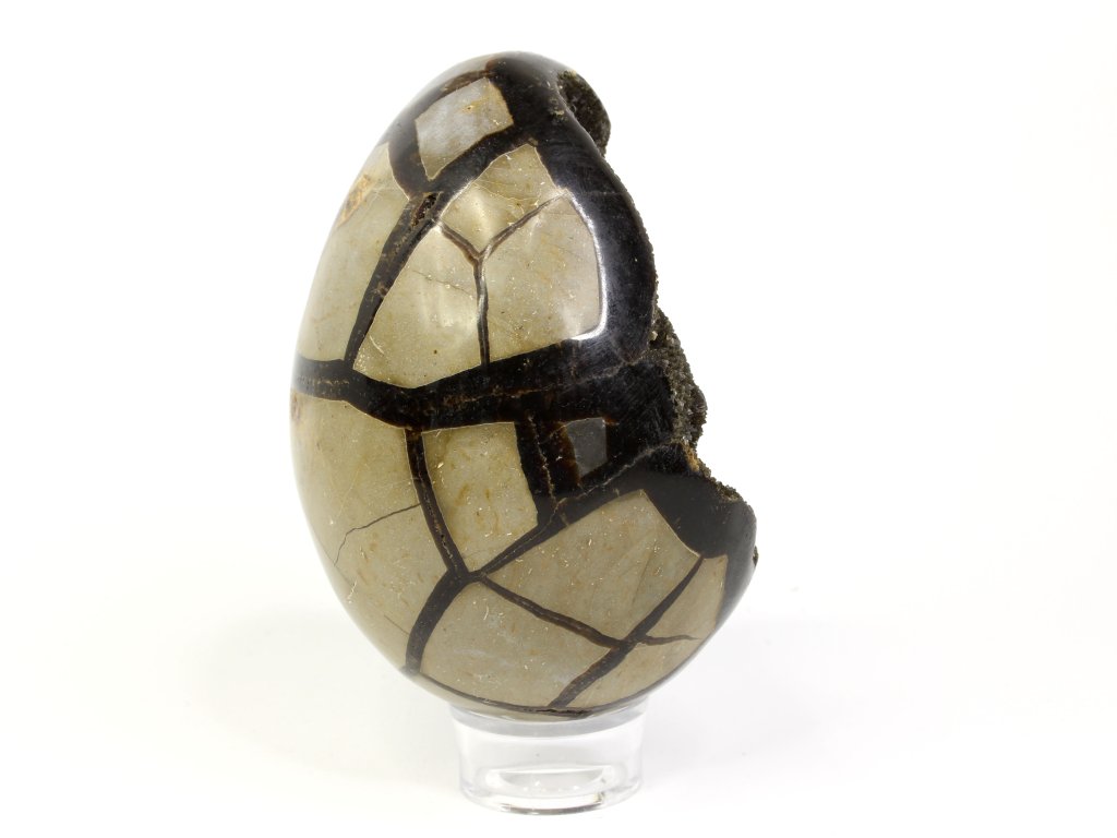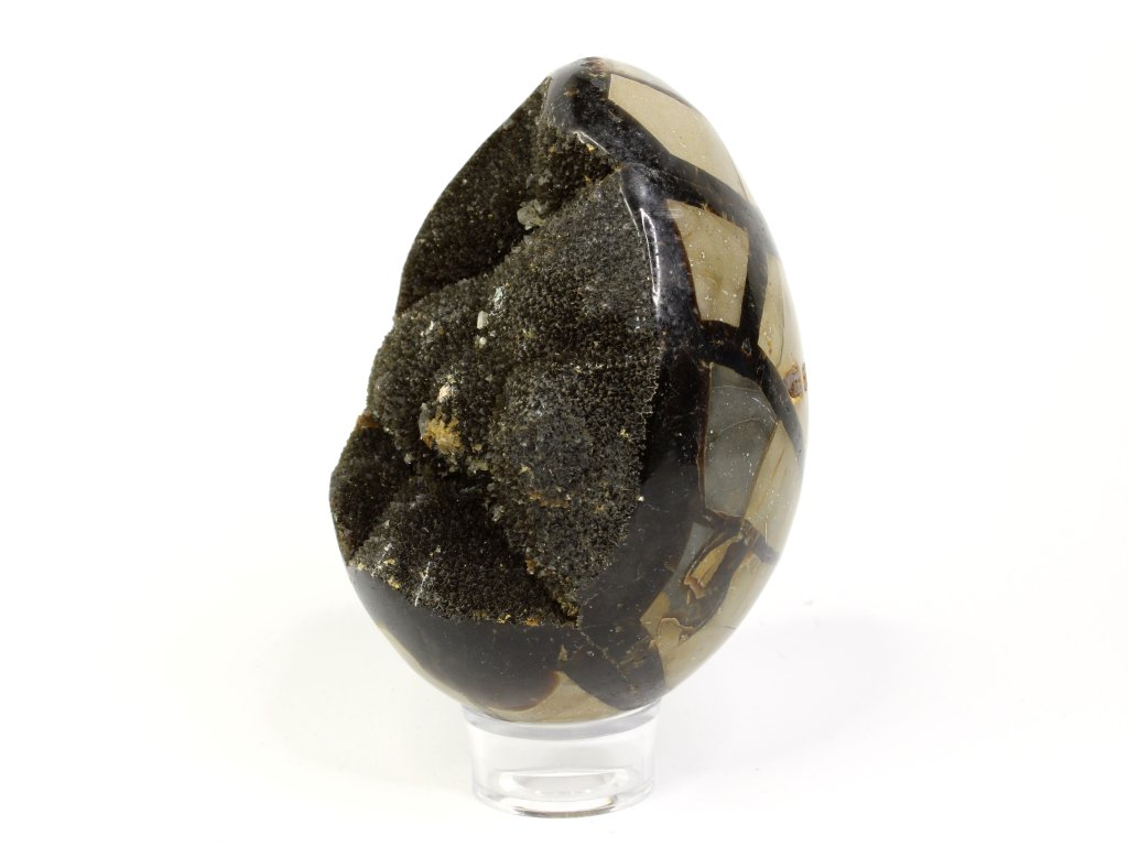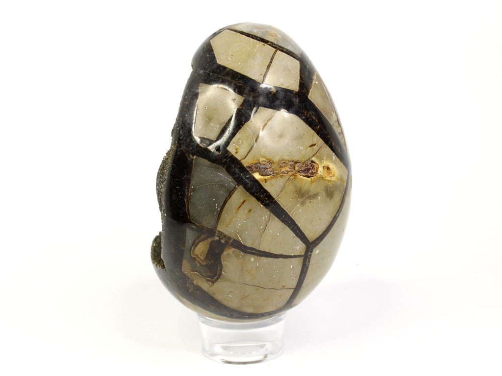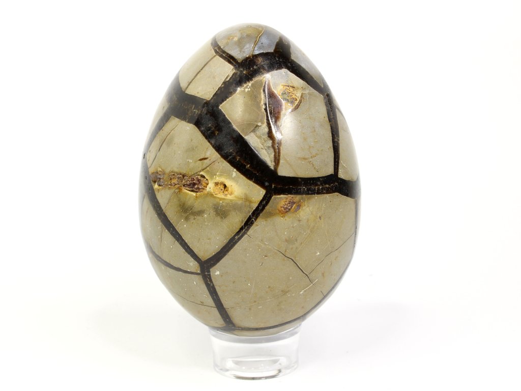Septárie, často nazývaná „dračí vejce“, patří k vizuálně nejpůsobivějším kamenům. Její praskliny vyplněné kalcitem a aragonitem připomínají pavoučkovité vzory nebo popraskanou zem, zatímco hnědo-žluté tóny působí jako pradávný artefakt. Každý kus je naprostý originál, který v sobě nese kouzlo přírody i dávné historie.